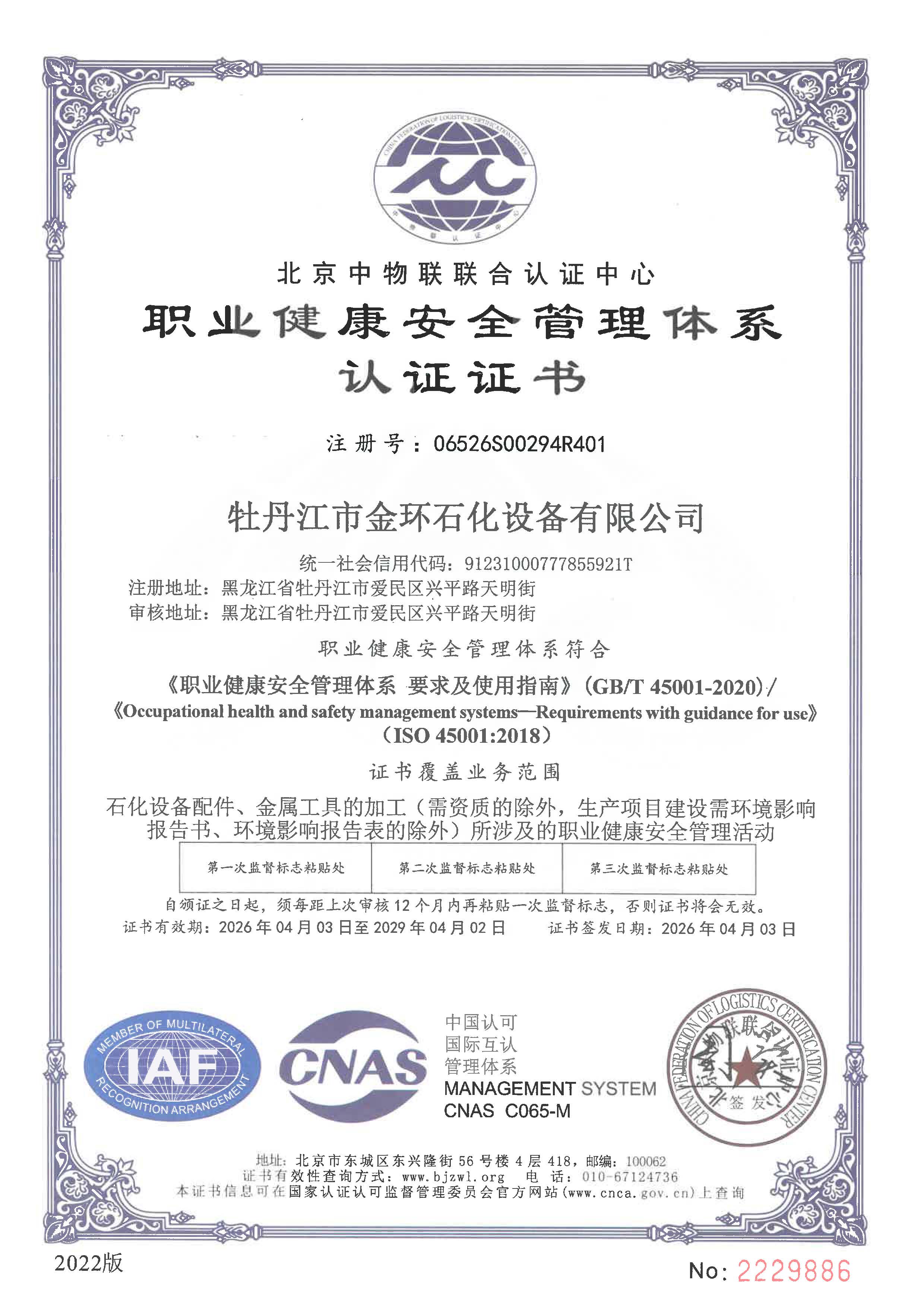 職業(yè)健康體系證書