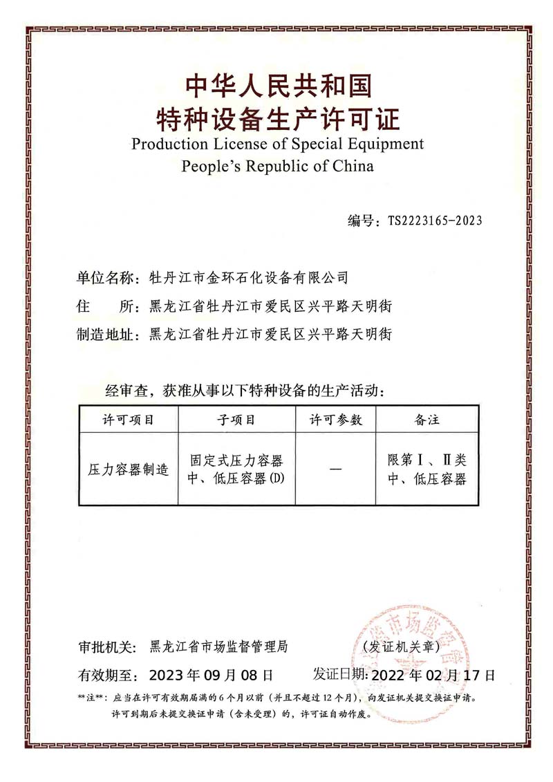 Mudanjiang Jinhuan Petrochemical Equipment CO.,LTD 牡丹江市金環(huán)石化設(shè)備有限公司 版權(quán)所有 m.036174.com